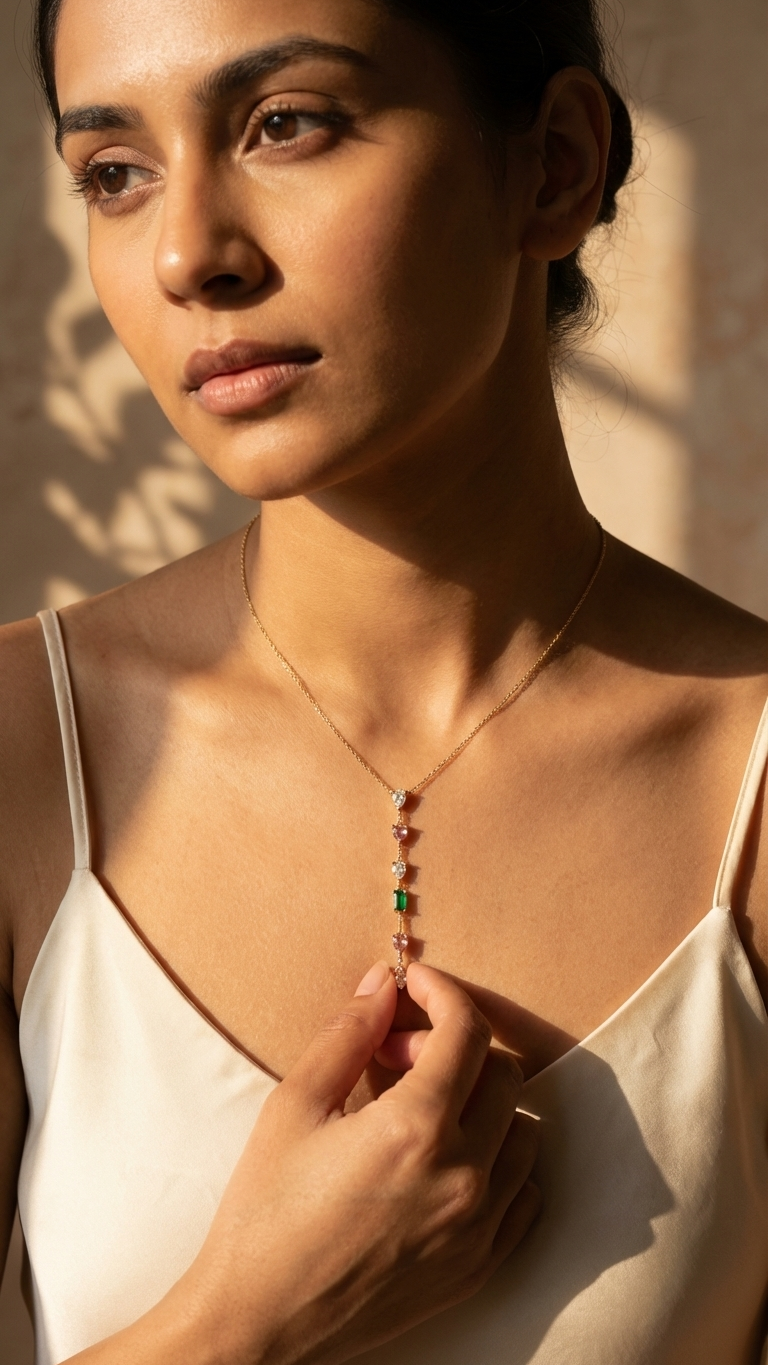 Explore our complete world of demi-fine and crystal jewellery — timeless silhouettes, luminous stones, and refined pieces designed to glow with you.